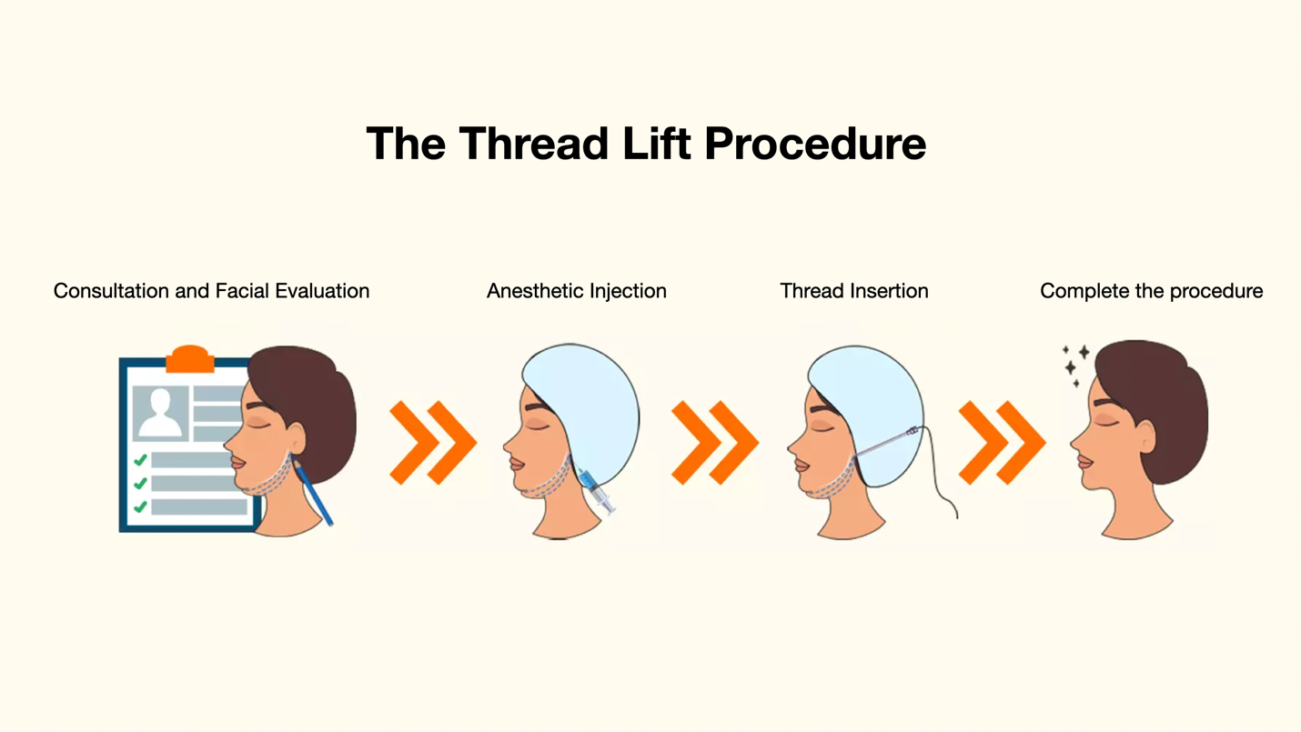 3. Thread Insertion: The doctor inserts the threads under the problem skin areas, lifting and tightening the skin, then cuts the threads to complete the procedure.