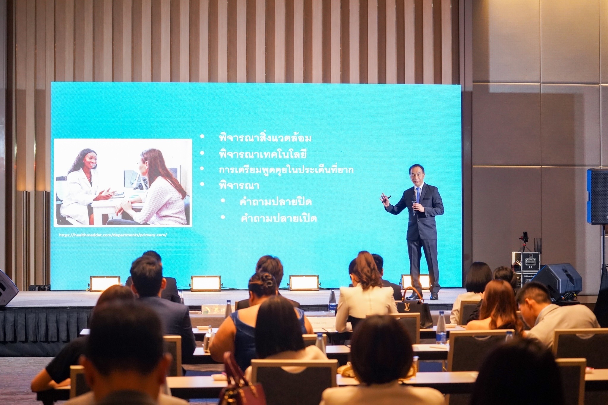 The event commenced with an opening address by Dr. Yongyuth Mayalarb, MD., Former Spokesperson for the Office of the Prime Minister. He also delivered a keynote speech on "Effective Communication, Conflict Management, Empathy for Internal Patients,” offering valuable insights to hospital and clinic executives, as well as medical personnel.