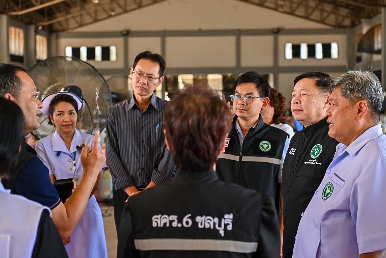 On December 15, 2025, Dr. Montien Kanasawad M.D., Director-General of the Department of Disease Control, conducted a field visit to evacuation centers in Sa Kaeo to monitor the health and well-being of displaced residents. During the visit, he offered encouragement to officials from all sectors working on the ground and provided essential medical supplies to support disease prevention and control efforts. The visit was joined by Dr.Anek Mungomklang, Deputy Director-General of the Department of Disease Control, along with senior officials from regional disease prevention and control offices.