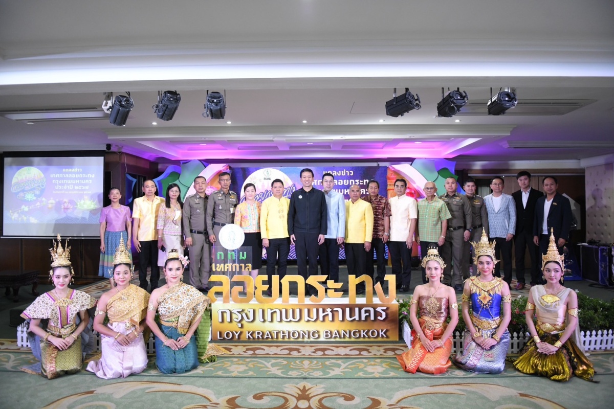 Mr. Sanon Wangsrangboon, Deputy Governor of Bangkok, joined with Mr. Singh Limpanipat, Director of the Office of Culture, Sports, and Tourism; Ms. Waranuch Suaykarkhao, Deputy Director of the Environment Department; Mr. Pallop Phaithoonbuathong, Deputy Director of the Disaster Prevention and Mitigation Department; and Mr. Ekwaranyu Amrapal, spokesperson for Bangkok, to announce the 2024 Bangkok Loy Krathong Festival at the Rattanakosin Room, Bangkok City Hall. This year, over 140 festival locations across Bangkok, supported by both public and private sectors, will celebrate Loy Krathong in traditional, digital, and online formats to preserve the festival's cultural heritage.