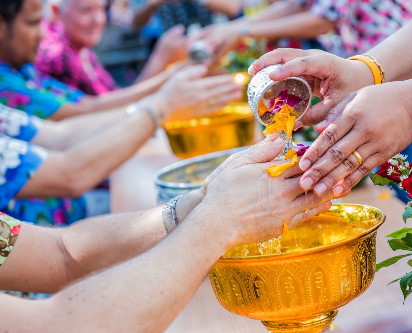 During Songkran, Thais engage in various activities that reflect their respect for family and community values. Key rituals include making merit by giving alms to monks, building sand pagodas, and releasing birds and fish to promote life and longevity. One of the most heartfelt traditions is the bathing of Buddha statues and the pouring of water over the hands of elders, symbolizing purification and the wish for good luck.