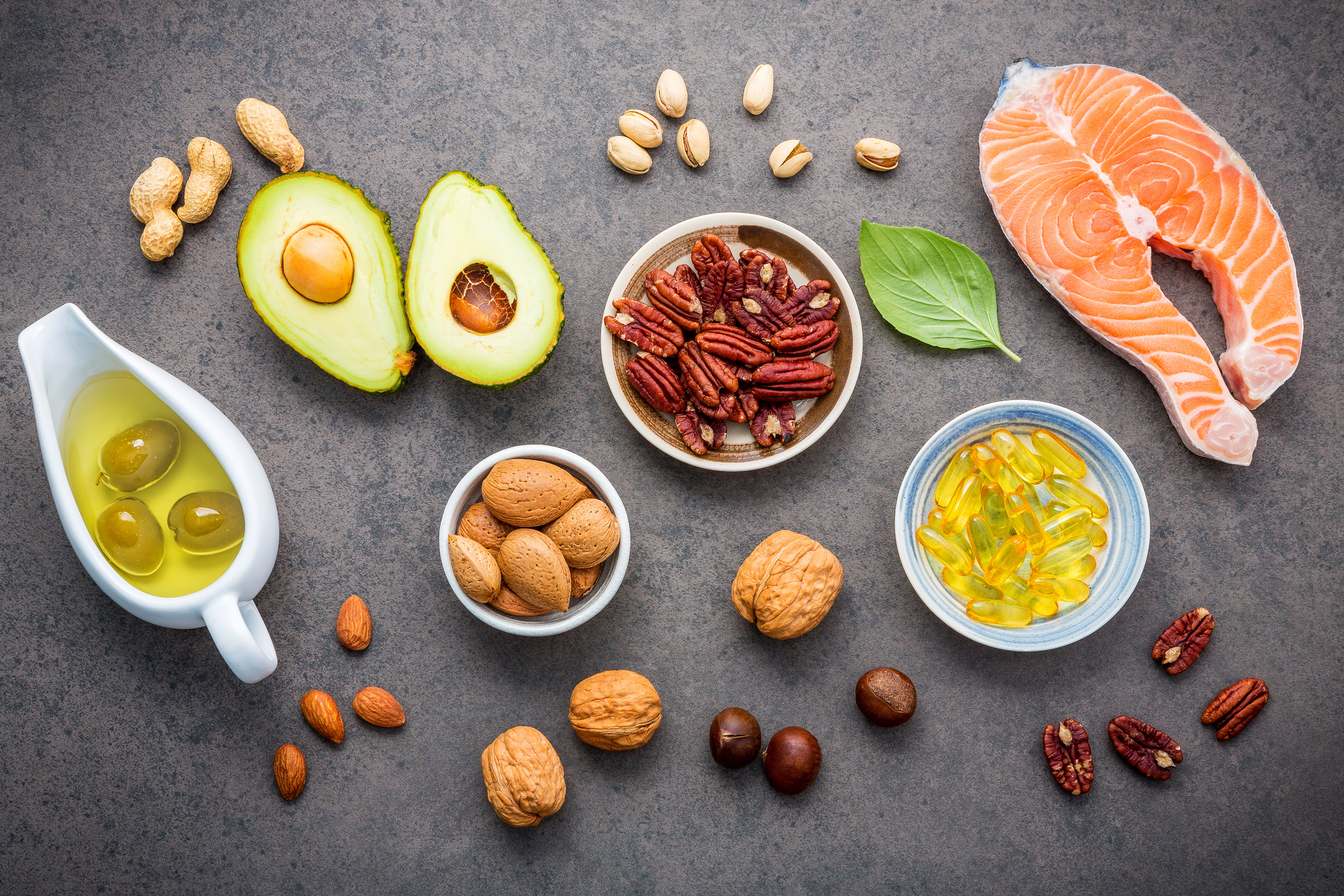 Healthy fats, such as monounsaturated and polyunsaturated fats, lower cholesterol and blood pressure. Examples include: