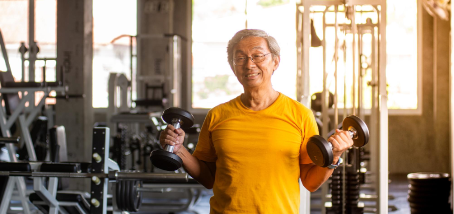 O uso de pesos leves, em torno de 3–5 quilos, ajuda a fortalecer músculos e ossos. Evite prender a respiração ou fazer força excessiva durante o levantamento de pesos. Idosos com condições médicas subjacentes devem consultar um médico antes de iniciar o treinamento com pesos.