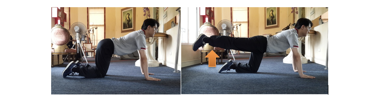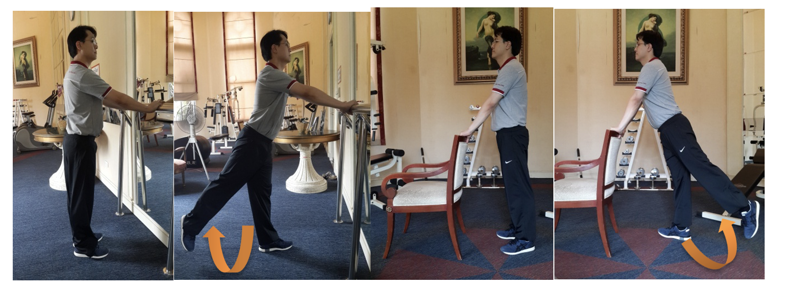 4.1. Músculos extensores do quadril: Fique em pé enquanto segura em um corrimão ou cadeira, estenda uma perna para trás 10 vezes de cada lado.