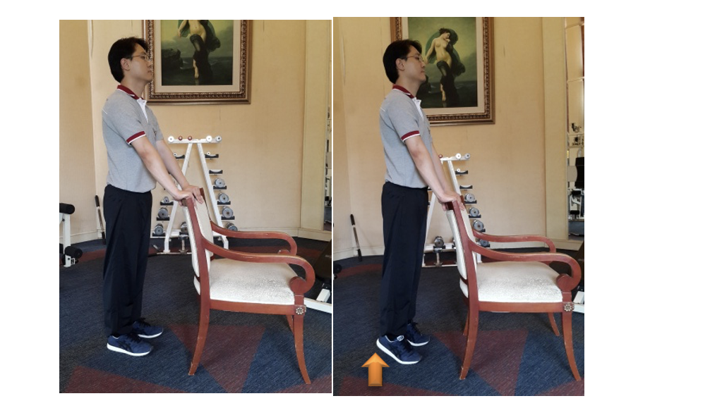 4.4. Músculos da panturrilha e tendão de Aquiles: Alterne ficando de pé nos calcanhares 10 vezes e nos dedos dos pés 10 vezes.